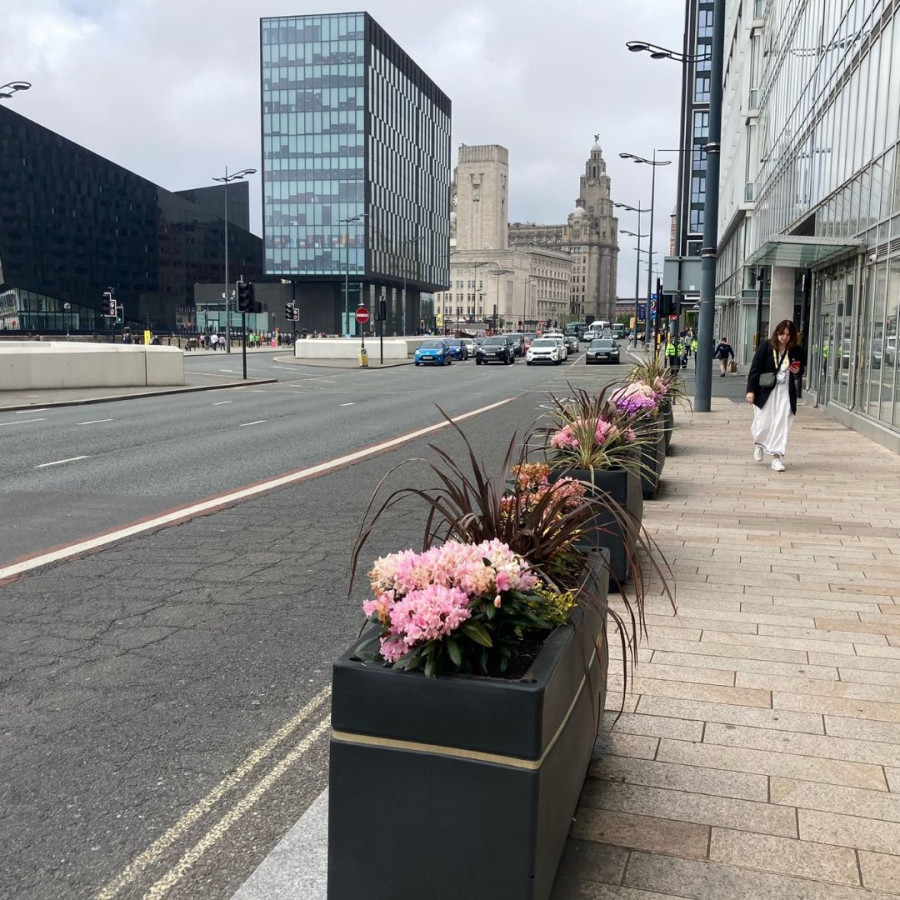 Amberol’s self-watering planters with show-stopping floral displays by Les Halman Nurseries Ltd and Liverpool City Council were located across the City of Liverpool for the Eurovision Song Contest 2023.