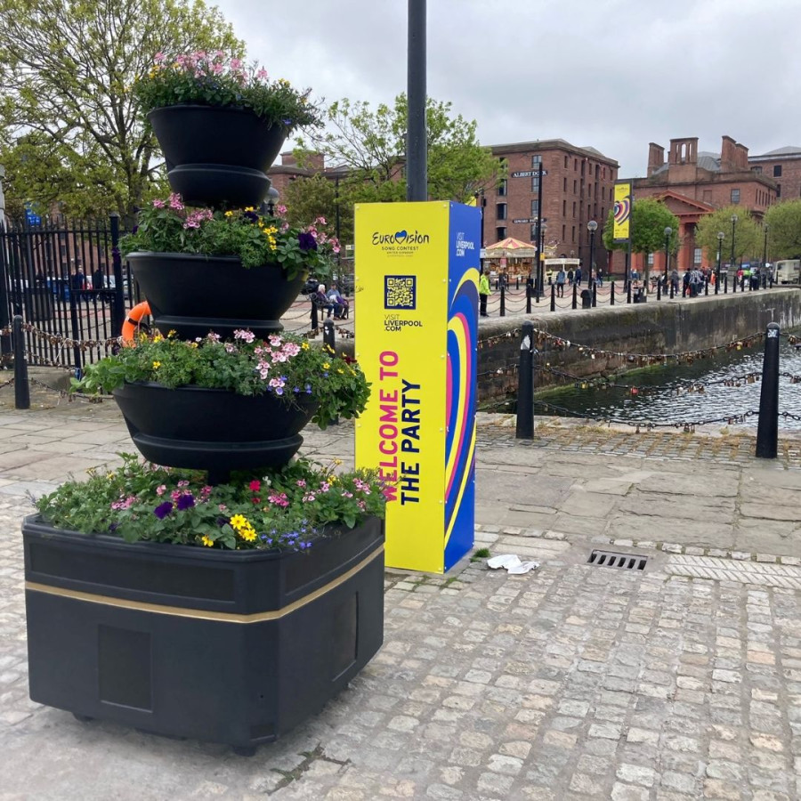 Liverpool City Council hosted the 67th Eurovision Song Contest in May and used our self-watering planters to create eye-catching floral displays across the city using our new Precinct Fountain Tiered Planters, Barrier Baskets and Promenade planters.