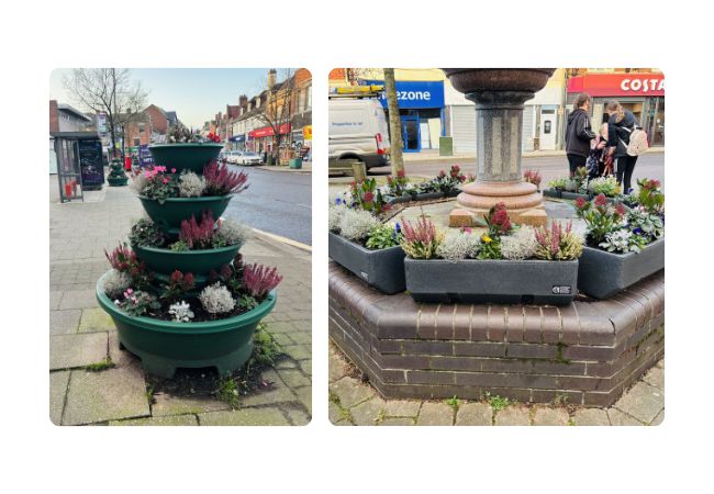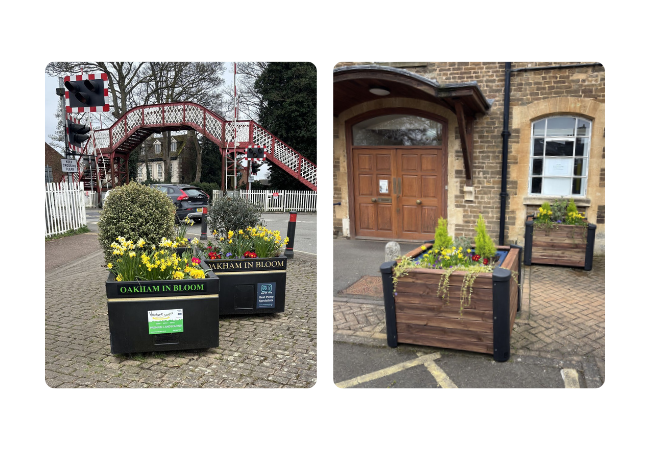 Transformation day in Oakham, Rutland. The Councillors and Oakham in Bloom team wanted a spring refresh of stylish new planters installed at their local railway station – and what a seamless result!